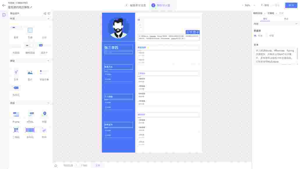 针对简历页面基于设计师平台可以快速设计出多种页面样式,,满足不同客户的多样化业务需求