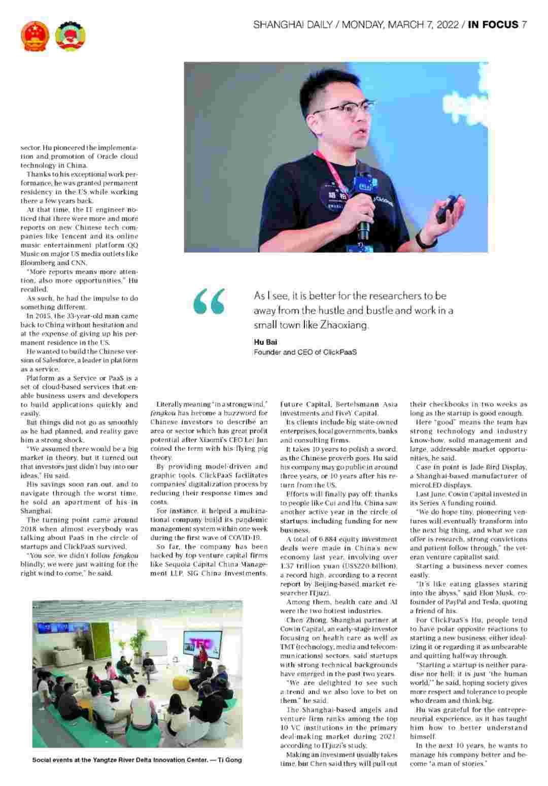 《上海日报》专访小米钱包创始人、、CEO胡柏,,,,探究其创业背后的故事!!!